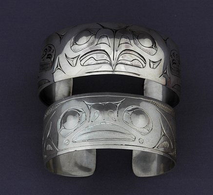 Two Northwest Coast Silver Bracelets - Frog 6 1/8"