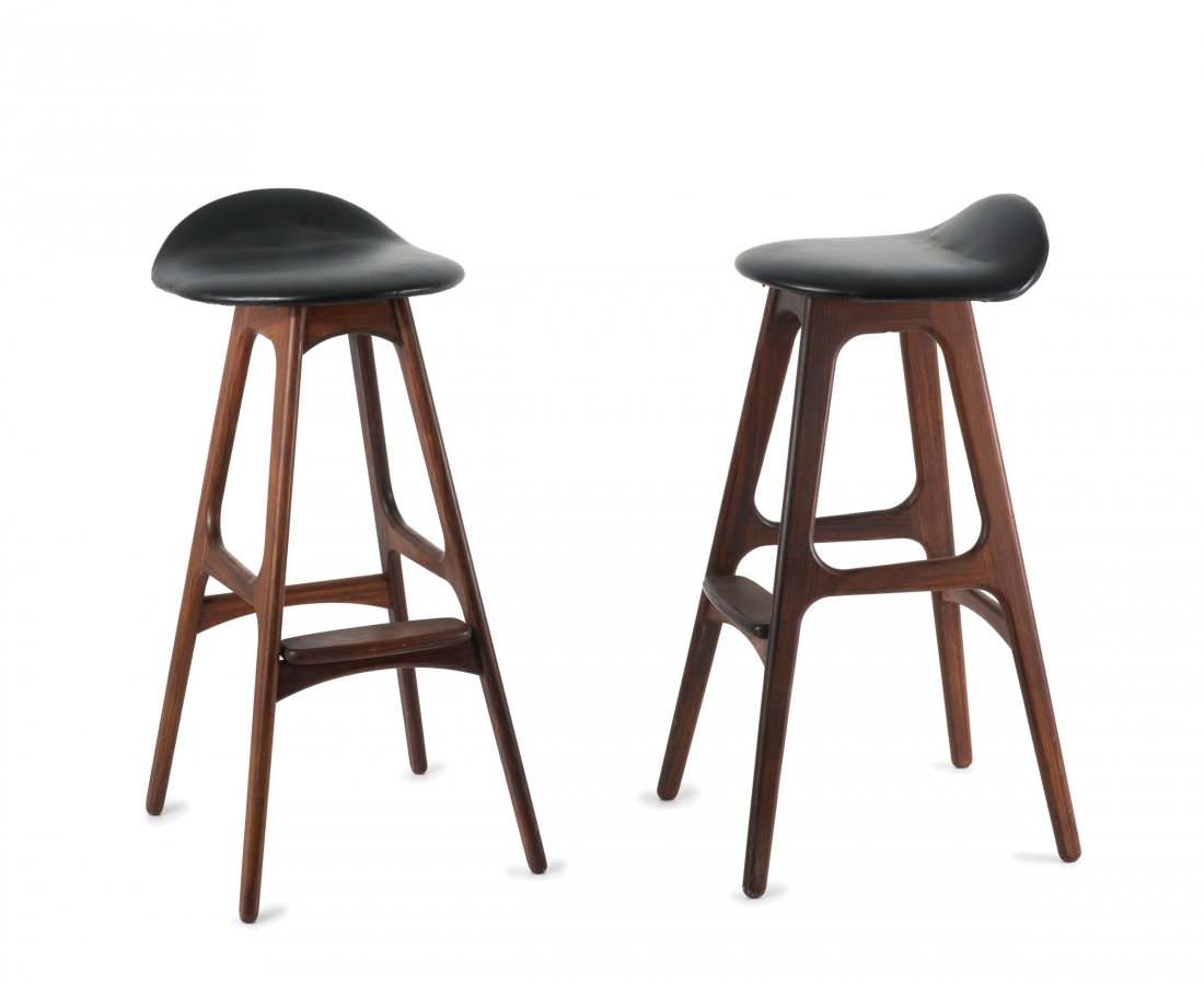 PAIR MAHOGANY ADJUSTABLE BAR STOOLS WITH LEATHER SEATS AND CHROMED IRON FOOT REST C 1960.Kamelot Auctions4.4(346)$4003 days Left