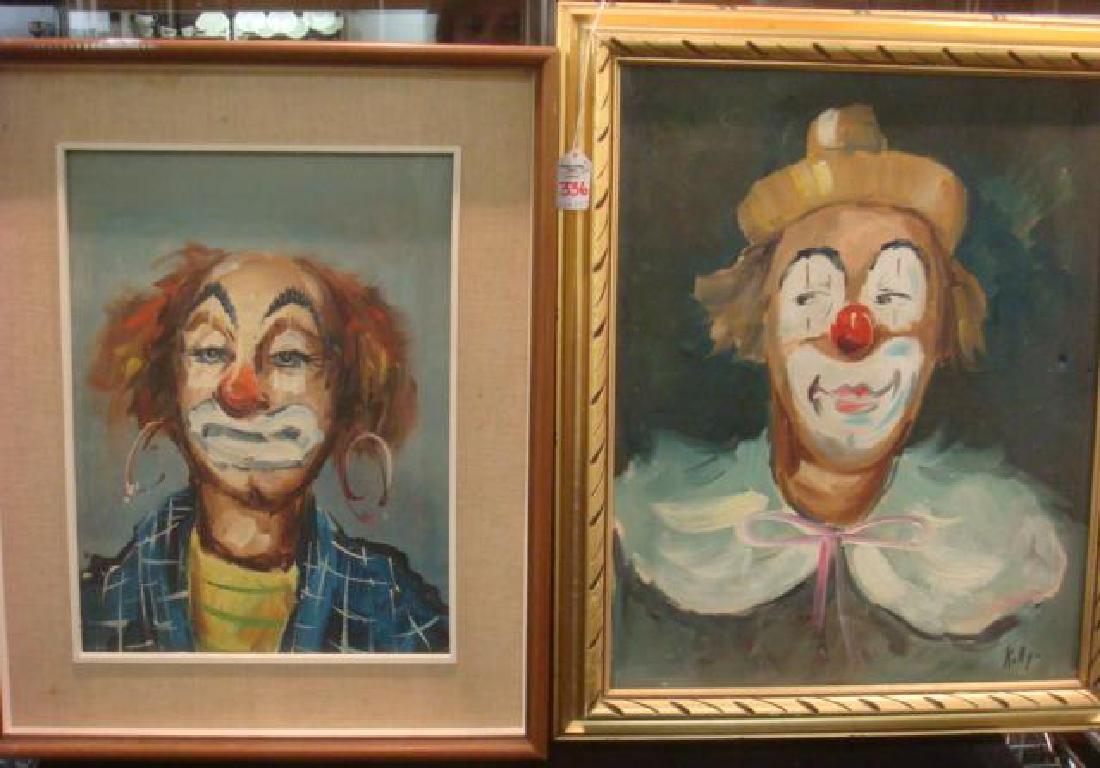 Lot of Two Decorative Paintings, Signed.5 days LeftDuaiv Clown Original Painting on Canvas18 hrs LeftGiordano Giovanetti (Italy,1906-1973) oil paintingMay 03, 2026Chuck Oberstein (Signed) - Untitled Clown Trio, Original Painting on Canvas5 days LeftHoward Koslow (NJ,NY,1924-2016) oil paintingApr 19, 2026Lorian (Europe,20C) oil painting6 days LeftDonna Dunann "Weary Willie" (Emmett Kelly 1975) Signed Original Oil5 days LeftTwo Framed Mixed Media AbstractsMar 05, 2026Charles Preston (NY,mid 20C) oil painting6 days LeftClown Group Painting, 20th CenturyJulian Ritter (1909-2000), Two clown portraitsMar 03, 2026Oil On Canvas Painting Clown with PuppetsMar 14, 2026"Two Clowns" by William Monet (American, b.1937) Oil on Canvas3 days LeftPair An Oil On Canvas Painting of a Clown Couple By Lydia4 days LeftCESARINO MONTI. Painting "CLOWNS"2 days Left▲ Ronald Ferns (British, 1925-1997) Two paintings of clowns:Mar 10, 2026