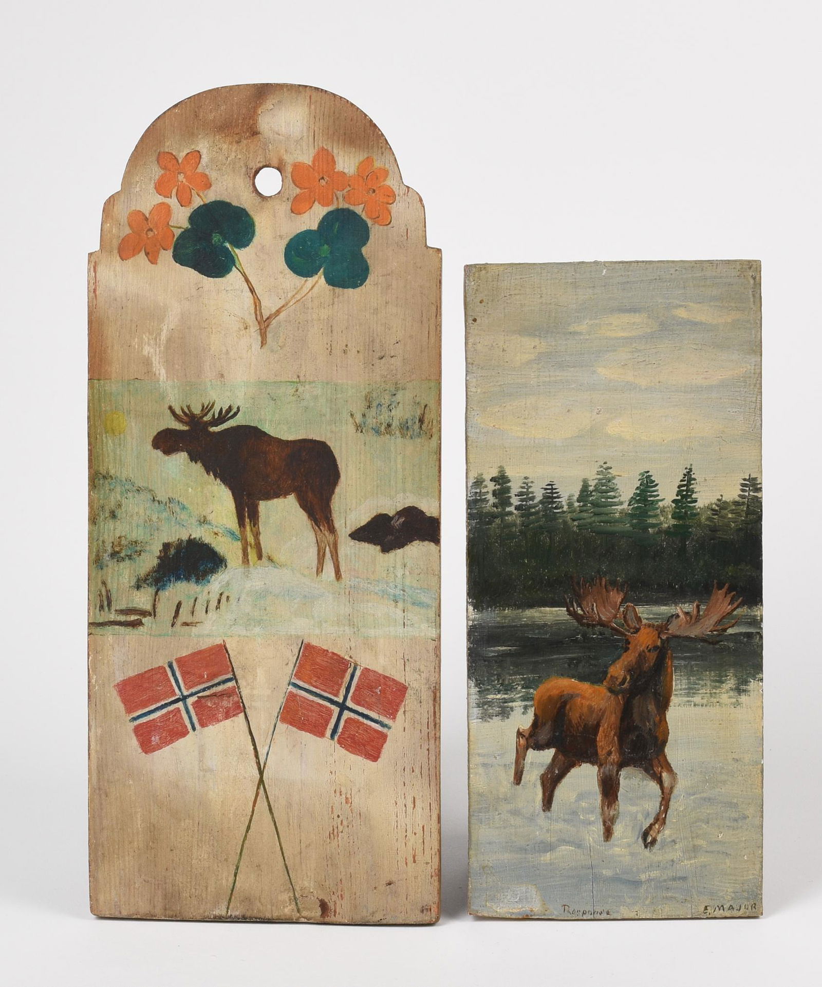 Two Oil on Panel Moose Paintings.