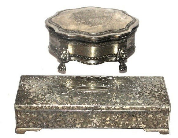 Two Ornate Silver-plate Dresser Boxes