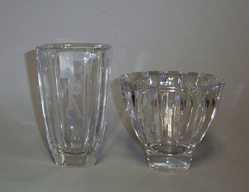 TWO ORREFORS CRYSTAL VASES Blown & engra