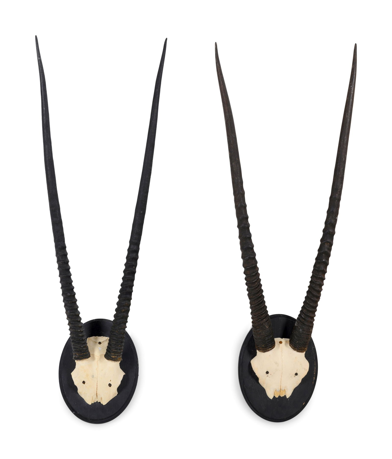 Sold2 Taxidermy Skull Mounts, Gemsbok and Springbok2 Taxidermy Skull Mounts, Gemsbok and Springbok. Gemsbok horns and skull mounted on wooden plaque. Springbok antlers and partial skull. Size: Largest: 33" H x 10" W x 18" DSee Sold Price