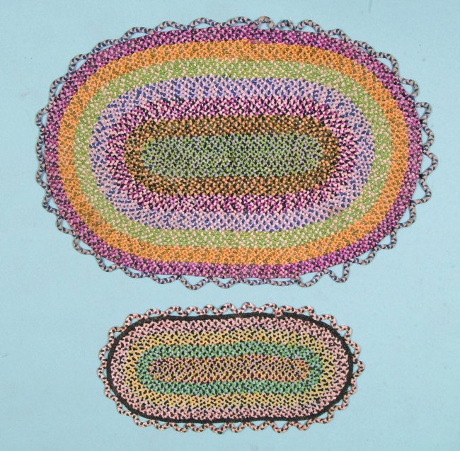 Two Oval Multi Colored Braided Table Mats, 16"l. a