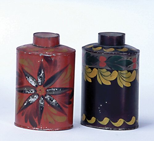 TWO PAINT-DECORATED TOLEWARE TEA CADDIES