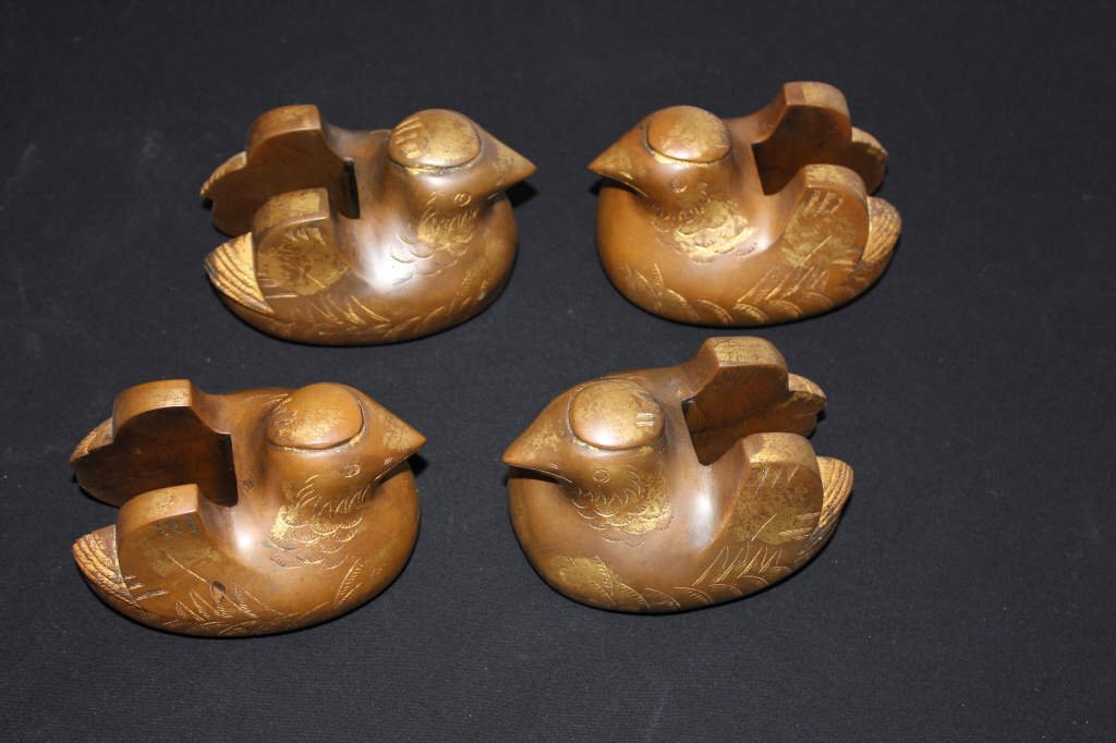 Two Pair Bronze Gilt Bird Form Bookends