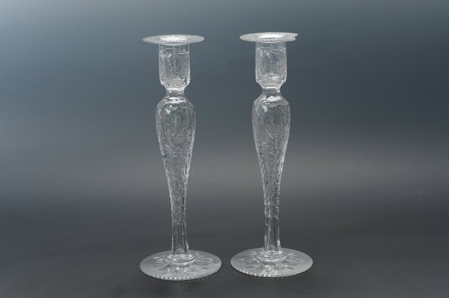 TWO PAIRPOINT ETCHED CANDLESTICKS