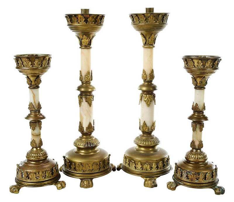 Two Pairs of Gothic Style Candlesticks