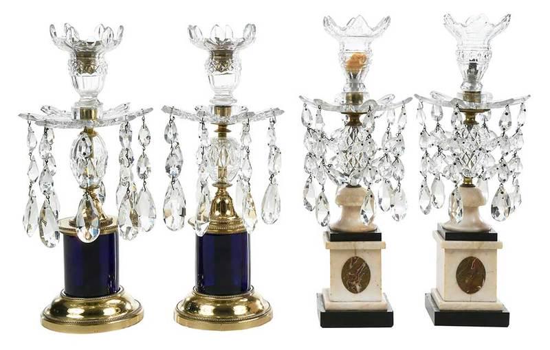 Two Pairs Regency Style Cut Crystal Candlesticks