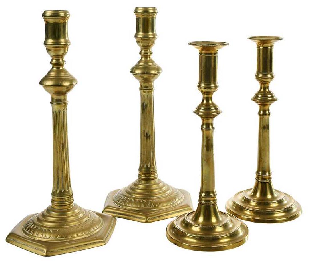 Two Pairs Tall Brass Chippendale Candlesticks
