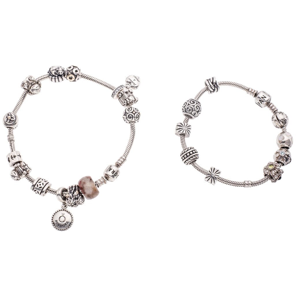 Two Pandora Silver .925 Bracelets. With 22 Charms.