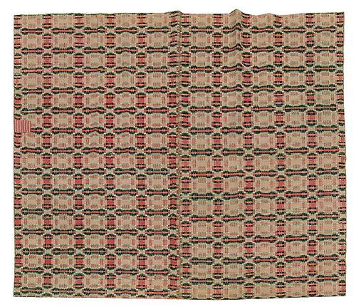 Two-panel hand-woven overshot coverlet,