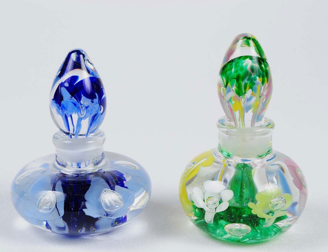 TWO PAPERWEIGHT GLASS SCENT BOTTLES