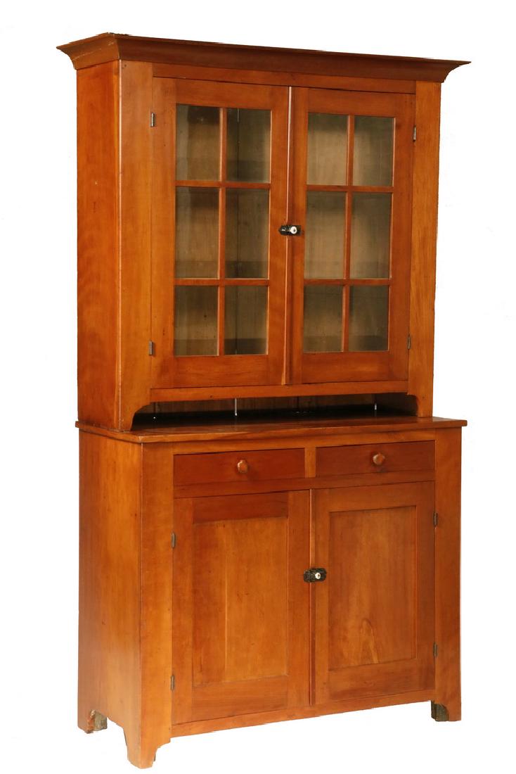 TWO-PART SOLID CHERRY STEPBACK CUPBOARD