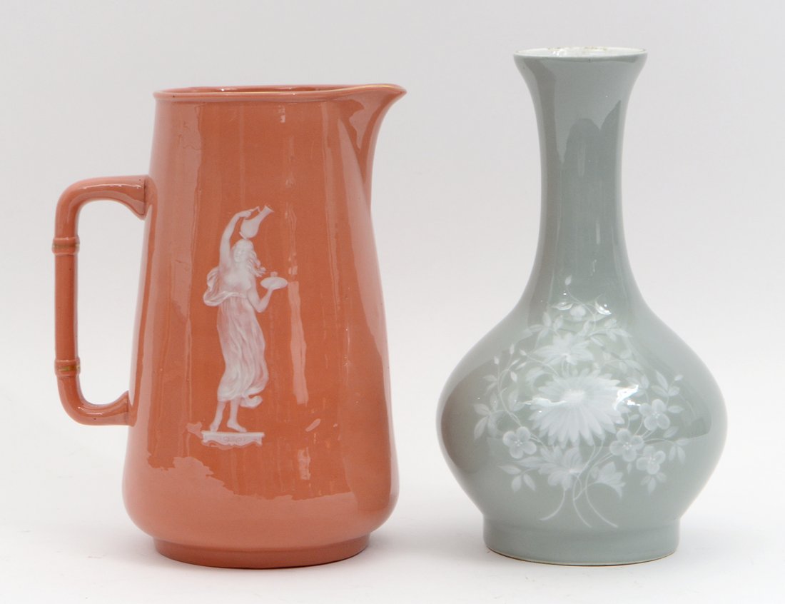 TWO PATE-SUR-PATE PORCELAIN TABLE ITEMS
