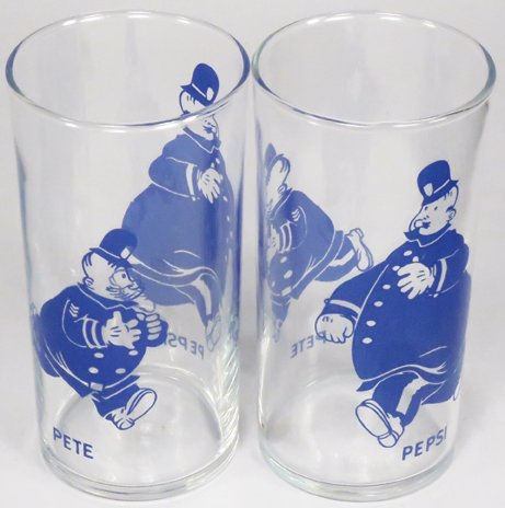 Two Pepsi Pete "The Policeman" Drinking Glasses