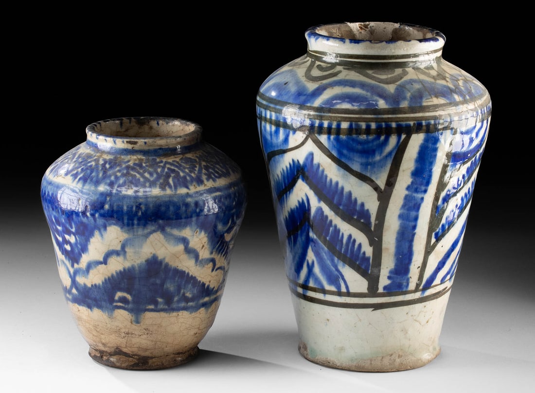 16th C. Persian Safavid Pottery Jars, White w/ Blue Pigment