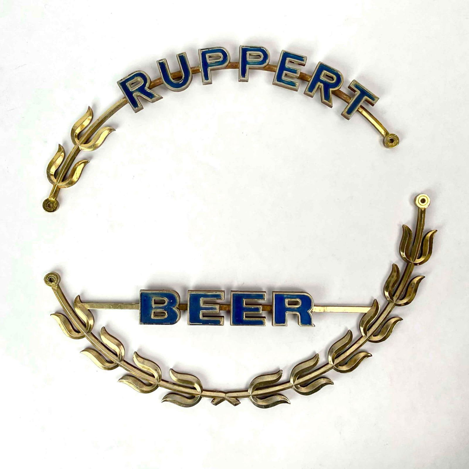 Two-Piece Brass Ruppert Beer Laurel Leaf Sign