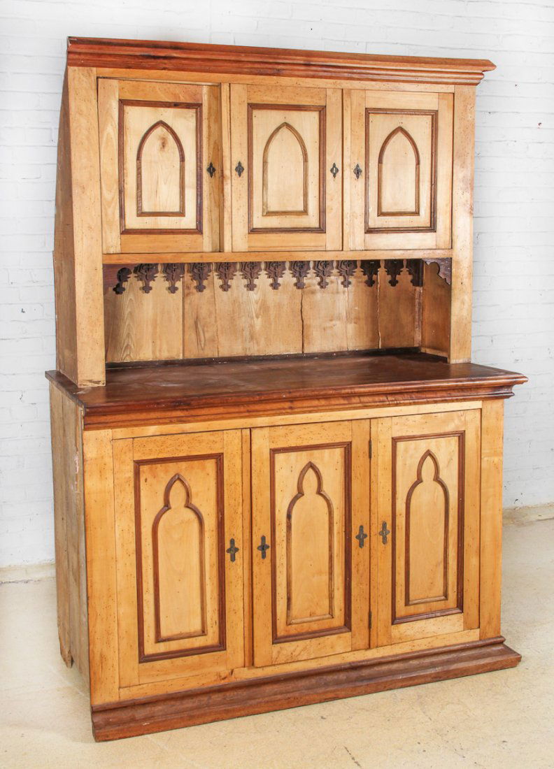 Two Piece Walnut Sycamore Hutch Monastery Cabinet