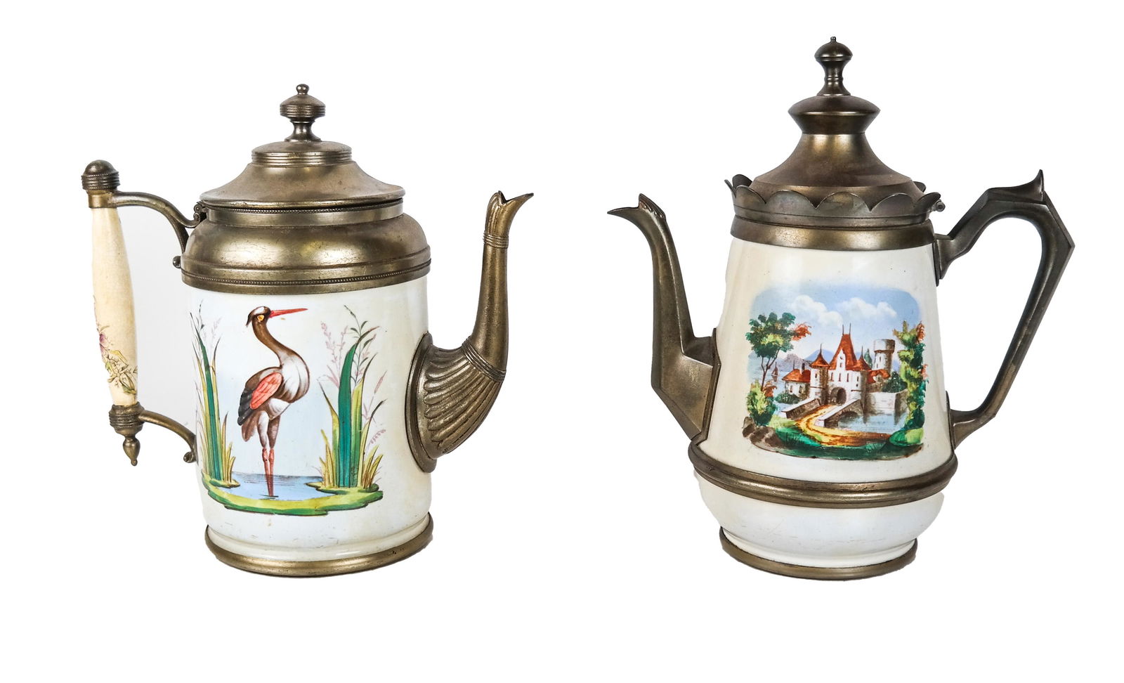 Two Porcelain, Pewter Teapots