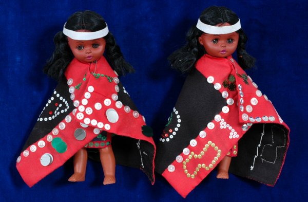 Two Potlatch Dolls with Button Blankets and Dress