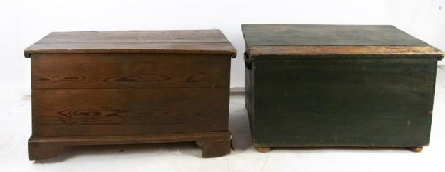 TWO 18TH C. PAINT DECORATED DOME TOP BOXES.