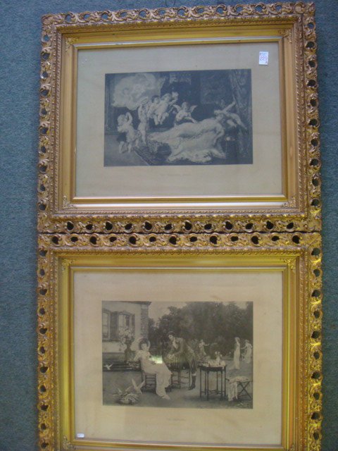 Two Prints in Gilt Pierced Acanthus Leaf Frames: