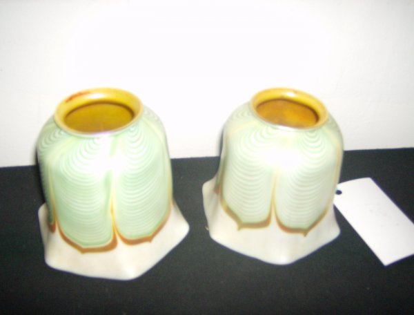 Two pull feather art glass shades