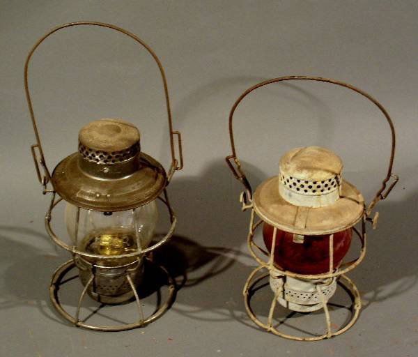 Two railroad lanterns- Adlake, double marked PRR
