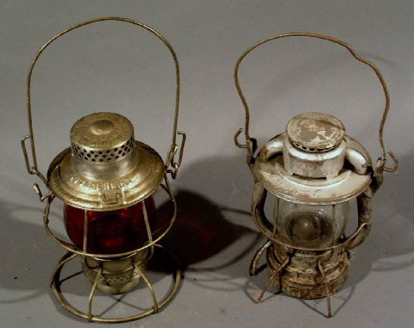Two railroad lanterns- Adlake, globe marked SORY