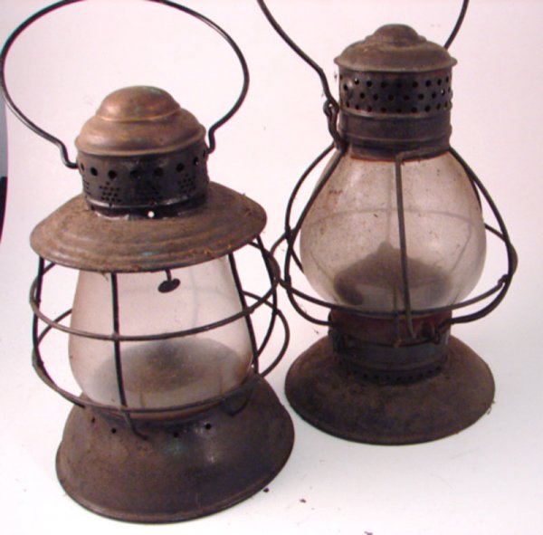 Two Railroad type lanterns. 16"h x 7"w.