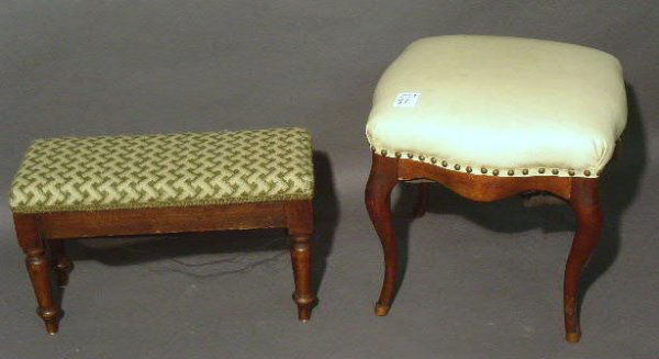 Two rectangular walnut stools. 12"h.x20"w.x18.5"d.
