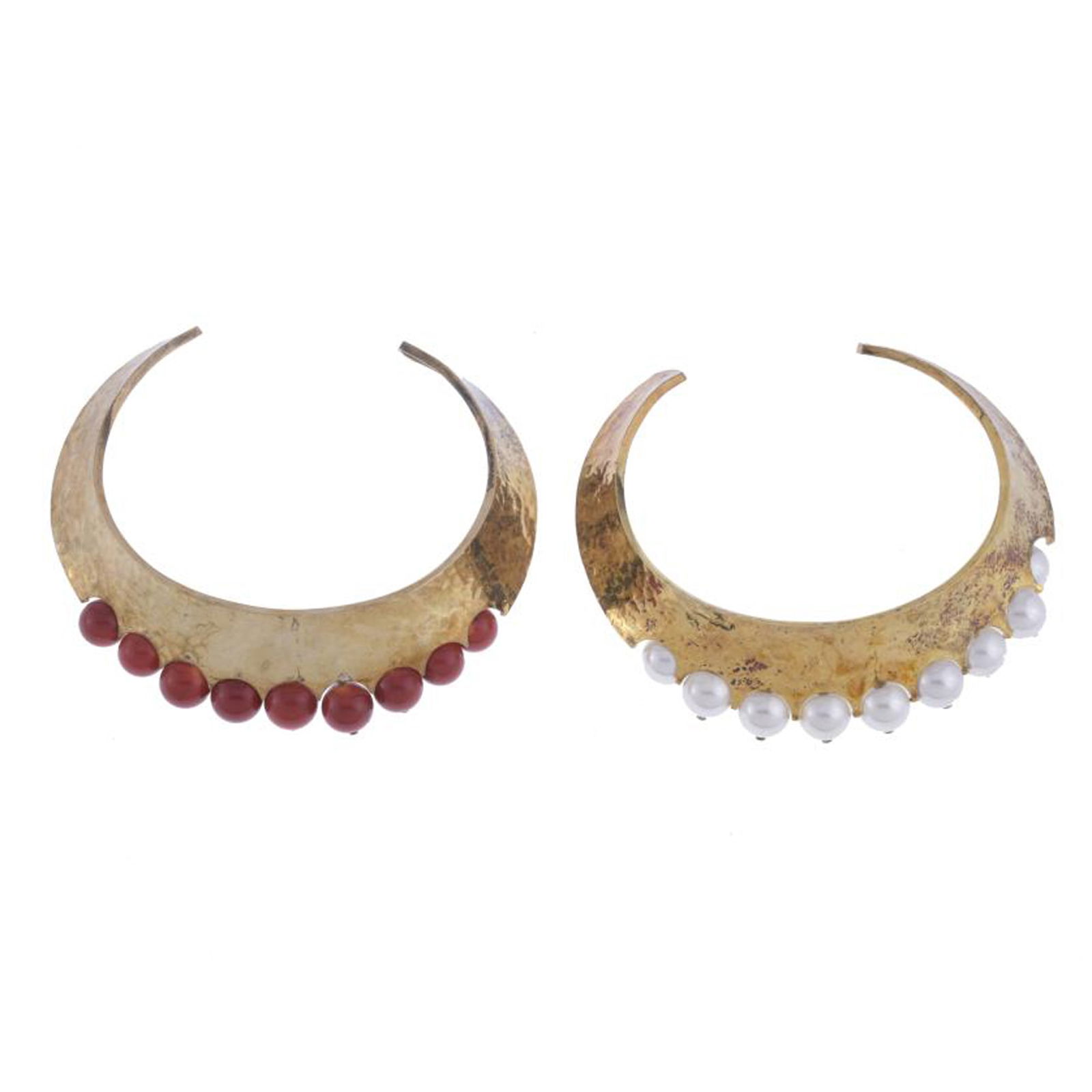 TWO RIGID BIB-STYLE NECKLACES.
