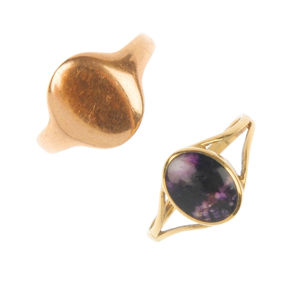 Two rings and a single opal cufflink.