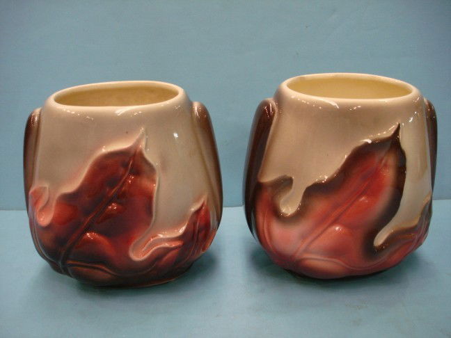 Two Royal Copley Vases w/ Orange Leaf Design