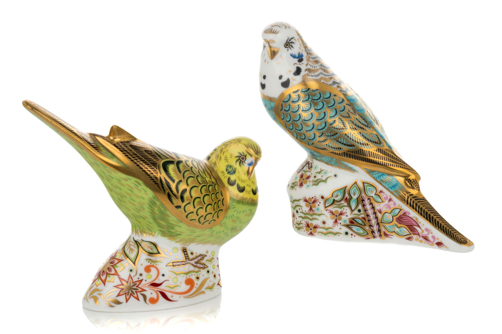 TWO ROYAL CROWN DERBY BUDGERIGAR PAPERWEIGHTS