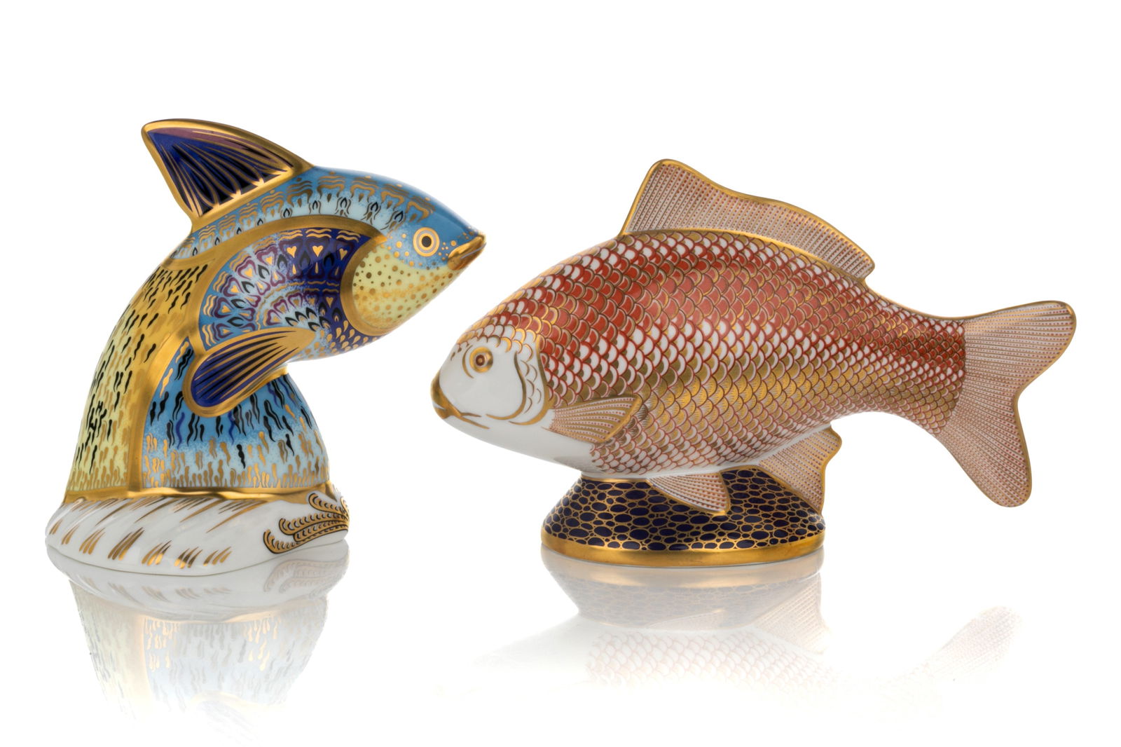 TWO ROYAL CROWN DERBY FISH PAPERWEIGHTS