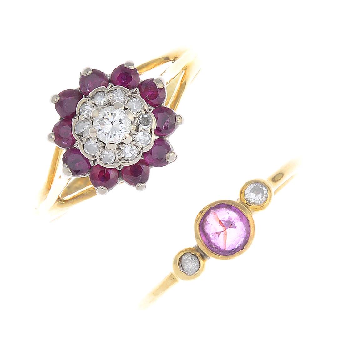 Two ruby and diamond rings. The first designed as a
