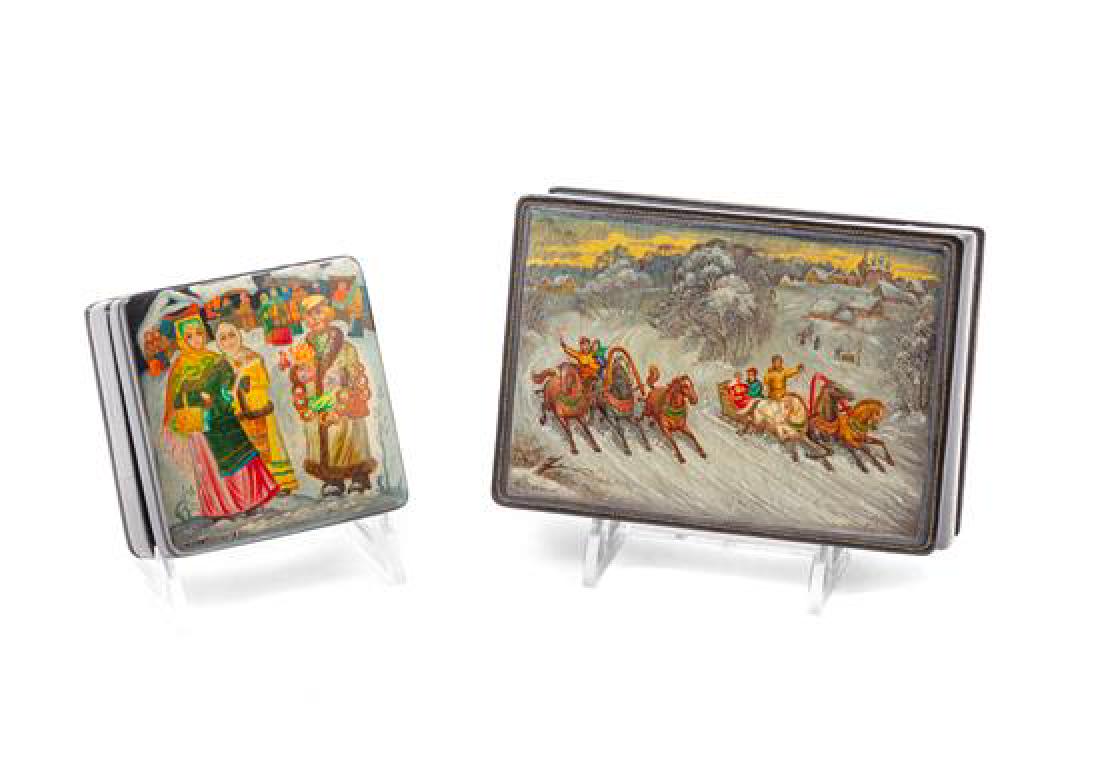 Two Russian Lacquer Boxes Height of largest 1/4 x width
