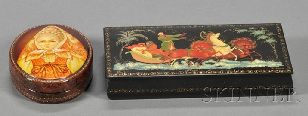 Two Russian Lacquer Boxes, modern, one oval, the h