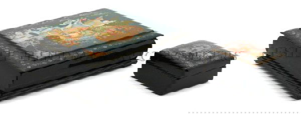 Two Russian Lacquer Boxes, Width 6 inches.