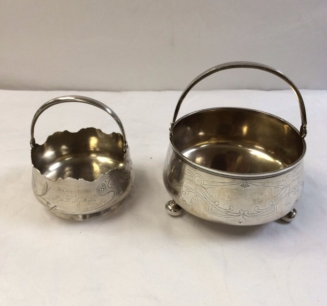 TWO RUSSIAN SILVER BASKETS WITH HANDLE