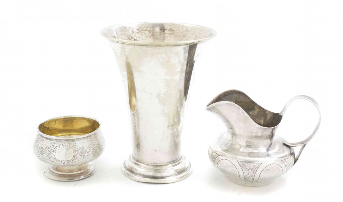 Lot of Weighted Sterling Silver Pieces2 days LeftLot of 2 Wallace Sterling Silver Items & AnotherFeb 18, 2026A composed lot of four religious silver and silver-plated brass church objectsFeb 24, 2026Sterling Silver Estate TablewaresFeb 24, 2026Collection of silver consisting of pepper and salt shakers, jugs, bell, bowl and statue of a boy,5 days LeftPair of Antique Russian Sterling Silver Vodka Cups4 Sterling Silver Trumpet VasesFeb 26, 20265 Sterling Silver Table ArticlesFeb 26, 20264 Sterling Silver Table Articles and an Oyster SaltFeb 26, 20267 Sterling Silver Table ArticlesFeb 26, 20263 Tall Sterling Silver Trumpet VasesFeb 26, 2026Alvin Manufacture Sterling Silver TablewaresFeb 24, 2026Gorham Plymouth sterling silver partial tea/coffee service, 3pc: lidded sugar bowl, creamer, wasteFeb 21, 2026Pewter Tankard And Two Cups6 days LeftGroup of 5 Silver ArticlesFeb 26, 2026Vintage Elevate your ta Silver Collection - Salt & Pepper Shakers (5") & Weighted Candle Holder (3")Feb 28, 2026