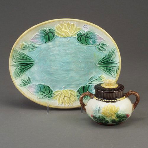 Two SAMUEL LEAR type majolica items, c.