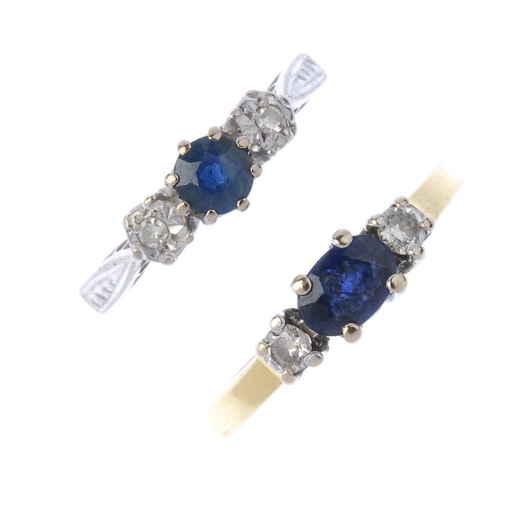 An 18ct gold sapphire and diamond three stone ring and a 9ct gold sapphire and diamond cluster ring,Sworders Fine Art Auctioneers4.4(38)£603 days Left