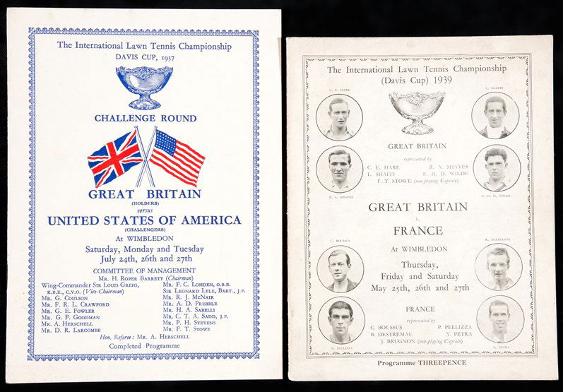 Two scarce Davis Cup programmes for 1937 and 1939, the