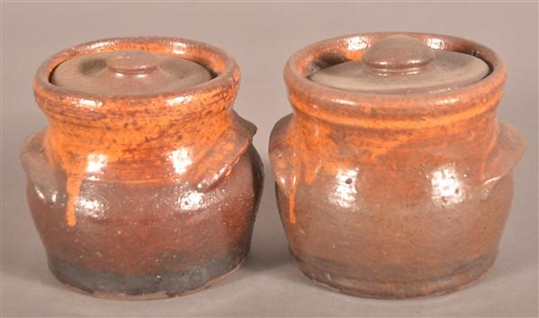 Two Schofield Pottery Covered Sugar Bowls.