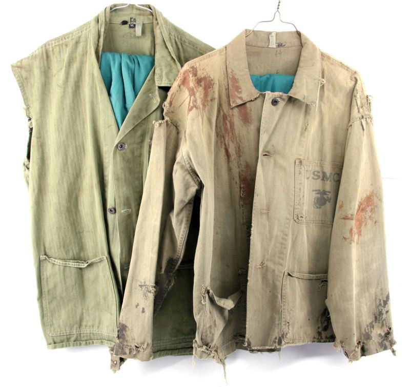 TWO SCREEN WORN USMC HBT SHIRTS FROM "THE PACIFIC"