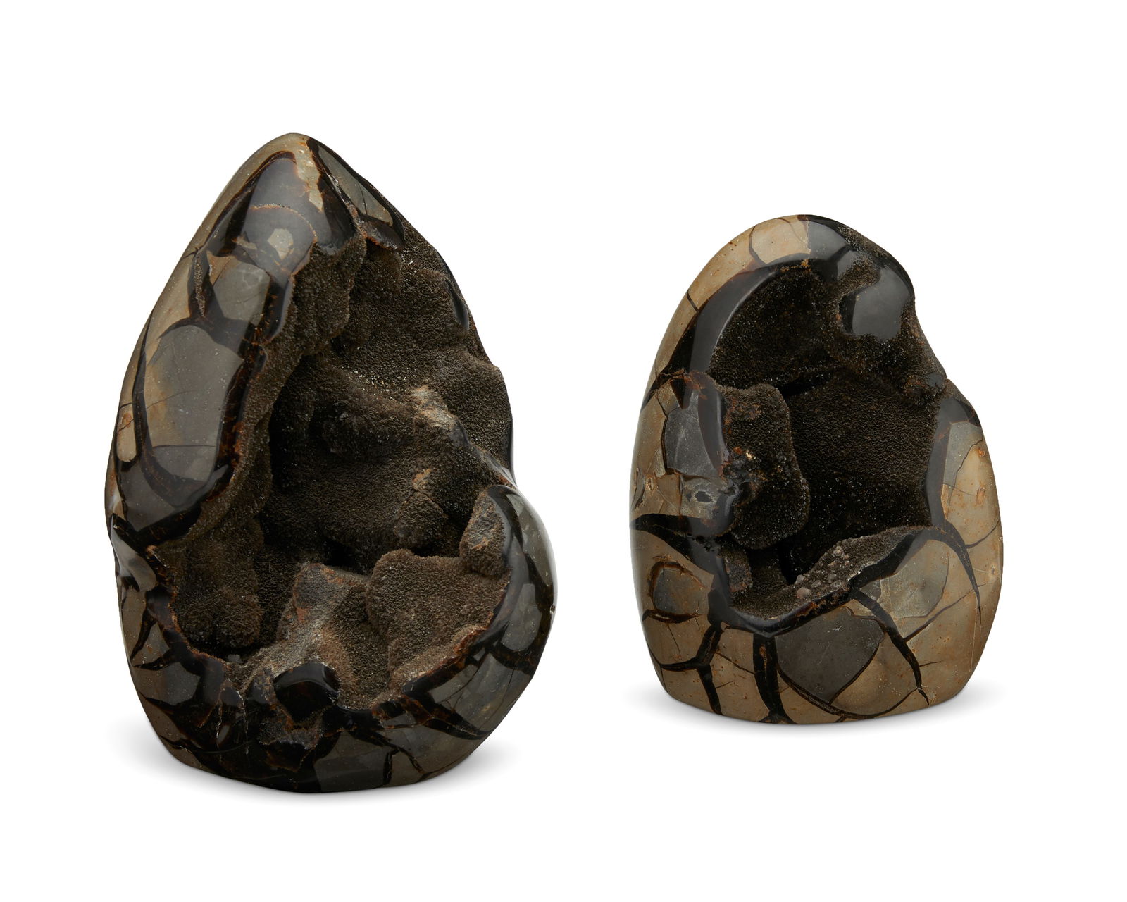 Two septarian mineral specimens