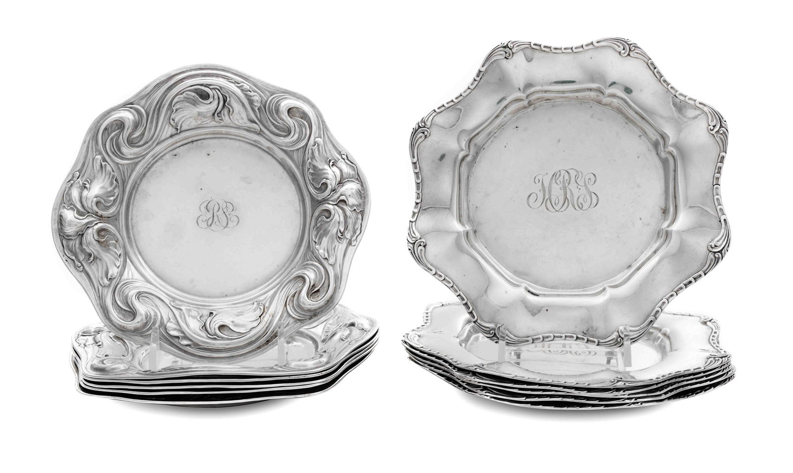 Two Sets of American Silver Bread Plates